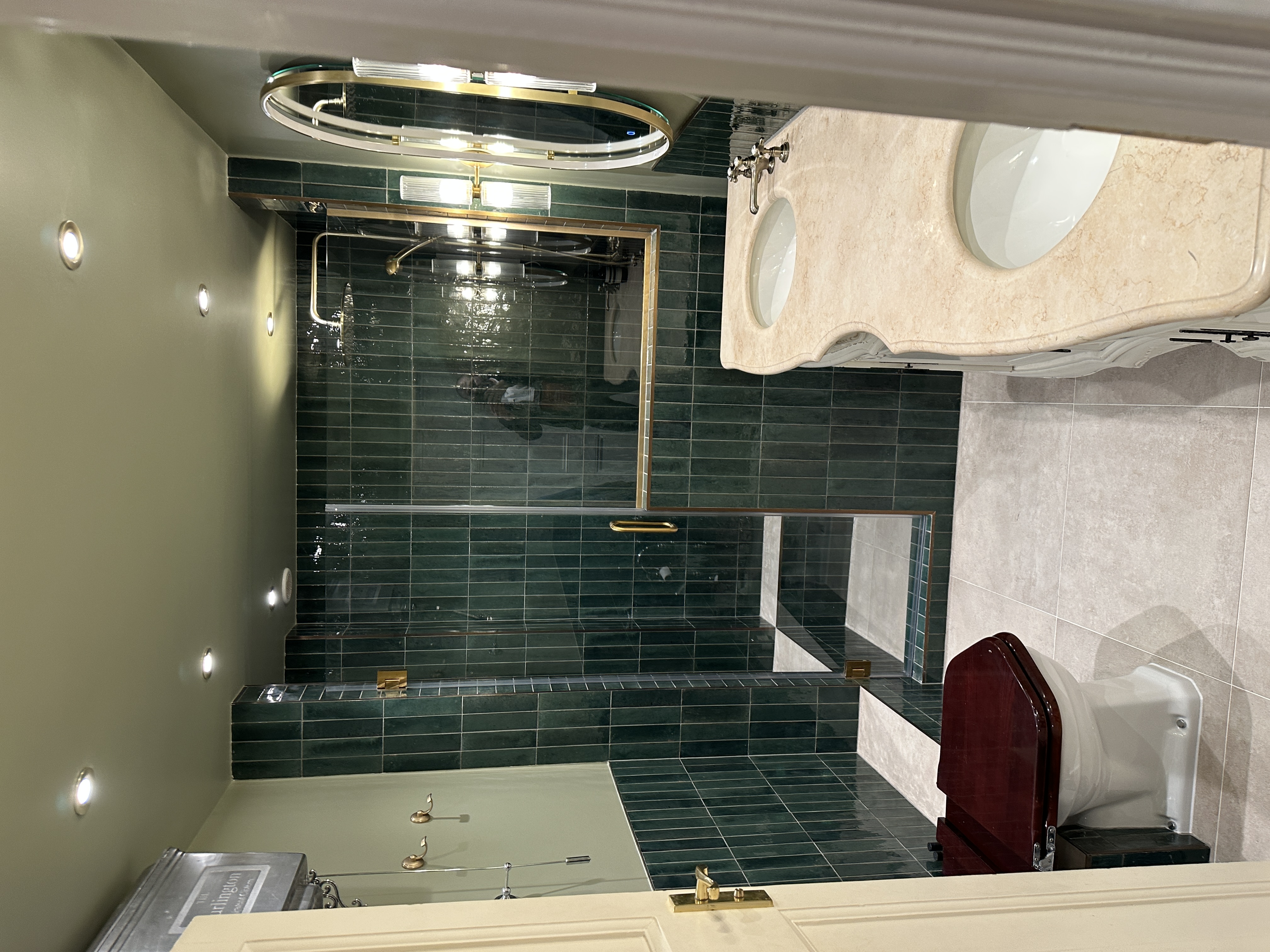 This carefully executed project transformed a loft into a refined, fully waterproofed wet room, delivered to a notably high standard. The build commenced with the installation of 25mm WBP plywood, followed by a Ditra uncoupling membrane and a Warmup electric underfloor heating system, ensuring long-term stability, comfort, and performance. New hot and cold water services were discreetly routed, after which both floor and wall tiling were installed with meticulous attention to alignment and detailing. The sanitaryware specification included a Japanese toilet, a vanity basin with cabinet and tap, and a precisely positioned shower mixer and outlet. A bespoke integrated mirror was recessed into the stud wall, maintaining clean lines and visual balance. Final finishes included full redecoration of ceilings and timberwork, completed to a crisp, contemporary standard. Arezzo bathroom fittings #mandarinstoneofficial #littlegreene #BathroomRenovation #wetroom #corstonarchitecturaldetail